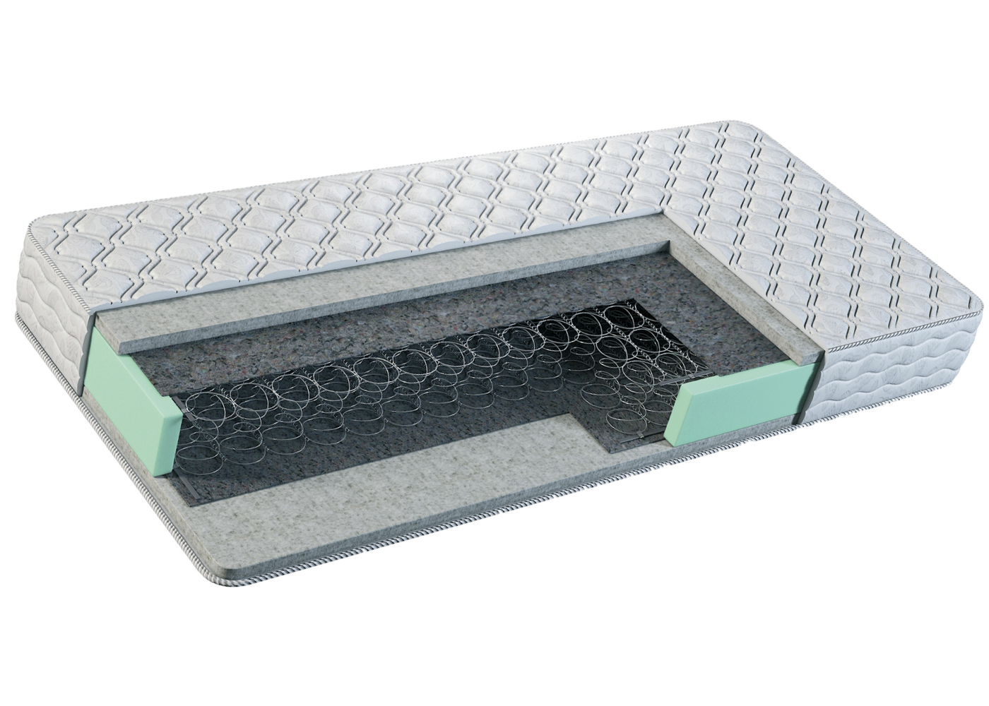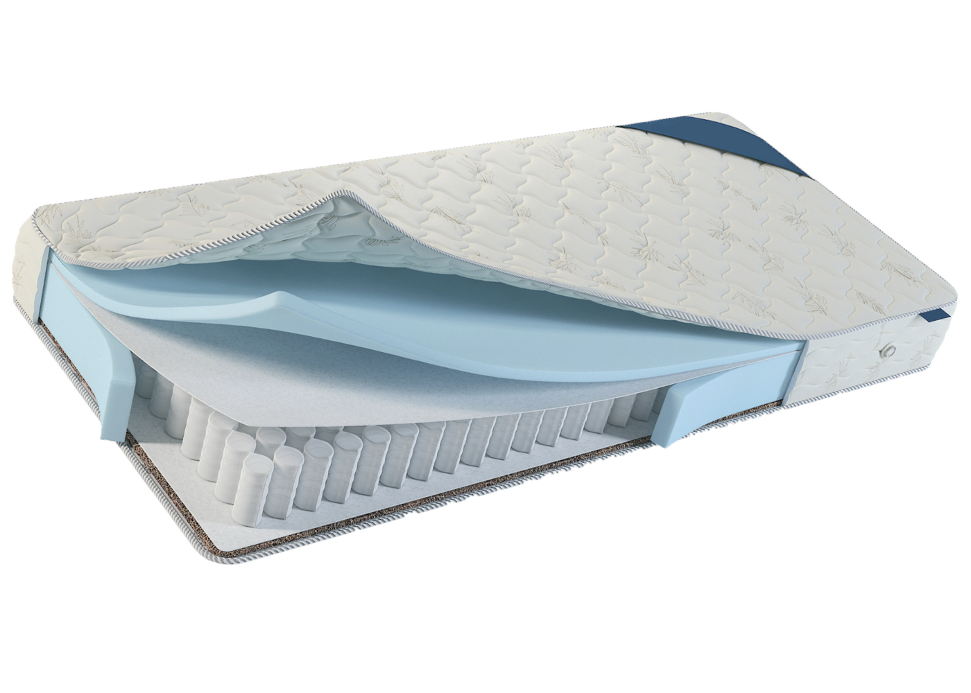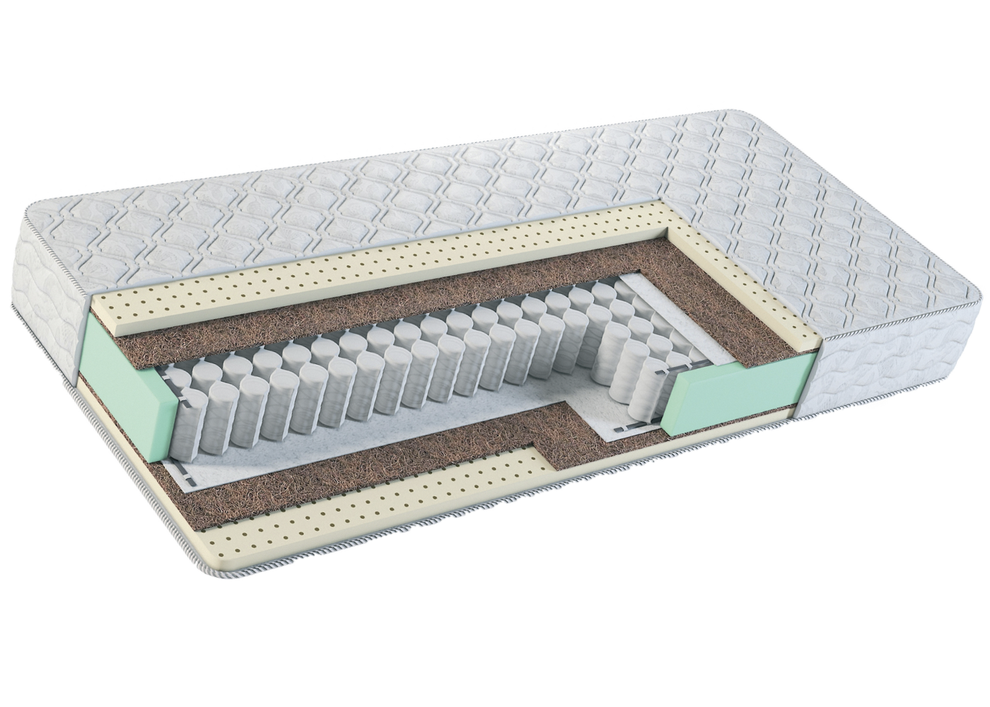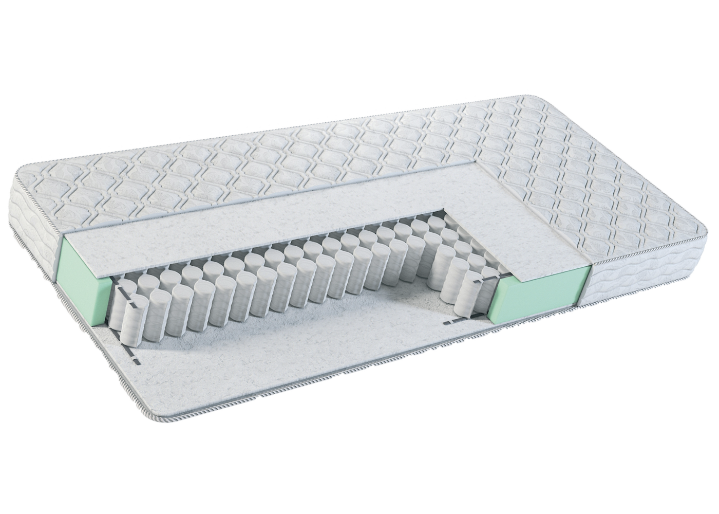 Пружины, которые изолированы друг от друга в специальные полотнятые мешочки,что увеличивает срок службы и ваш матрас не будет скрипеть.